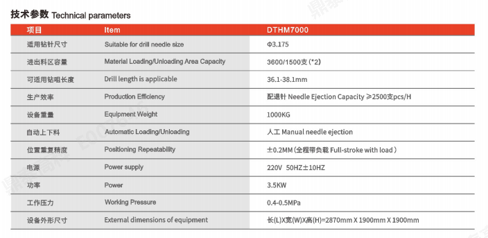 DTHM7000 雙臺面配退針機適用于鉆針房取代傳統(tǒng)的手工作業(yè),可對中0.1mm 至中6.5mm 范圍內的鉆頭實現(xiàn)鉆針的信息綁定、自動 配針、自動退針等工序。雙工作臺面可保證不停機換料,提升作業(yè)效益,可兼容多批次多型號的配針作業(yè)。